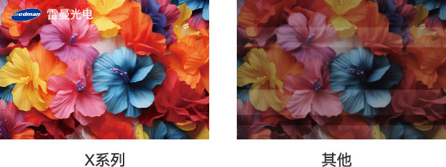 高亮,戶內(nèi)1000-1200nit(x19 800-1000nit),半戶外4000nit(X19 3500nit),高刷新:>3840Hz,高灰,低亮依然不影響顯示效果;