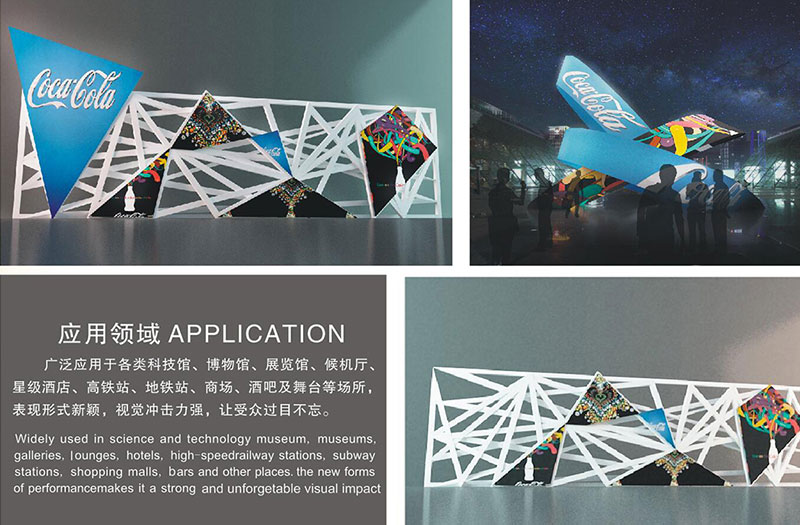 1、根據(jù)需要拼接成菱形、三角形等多邊形顯示屏,用作室內(nèi)墻面、地面的裝飾。