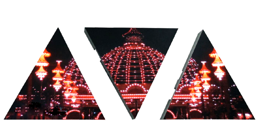 三角形LED顯示屏,是LED顯示屏的一個細分市場體現(xiàn),根據(jù)客戶要求進行定制的一款創(chuàng)意性LED顯示屏。采用三角形模組,可以組合成三角形、鉆石形、菱形等多邊的LED顯示屏,不但造型新穎,而且還適合一些特定場合,起到裝飾裝修的作用,可以播放視頻廣告。
