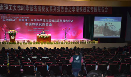 時(shí)逢華南理工大學(xué)60周年“甲子”校慶,作為本次校慶活動(dòng)的重要內(nèi)容“60華誕杰出校友報(bào)告會(huì)”,應(yīng)華南理工大學(xué)校領(lǐng)導(dǎo)、校友總會(huì)盛情邀請,李漫鐵董事長于11月1日重返母校,與在校師生共同分享了一場主題為“磨礪自身,成就夢想”的報(bào)告演講。