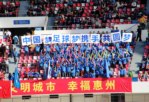 作為粵港兩地每年一屆的傳統(tǒng)足球賽事,省港杯足球賽是中國足壇最矚目的年度比賽之一,也是粵港兩地齊心協(xié)力、傾力打造的足球盛會。第37屆省港杯足球賽在惠州的首回合比賽吸引了大量觀眾前來觀看比賽。今天的惠州奧體中心共容納了來自廣州、深圳、香港等地和惠州當(dāng)?shù)氐那蛎怨?萬余人?,F(xiàn)場球迷的加油聲響徹惠州上空,在為廣東隊(duì)加油的同時(shí)不少球迷也加入為香港隊(duì)鼓勁吶喊的陣容當(dāng)中。