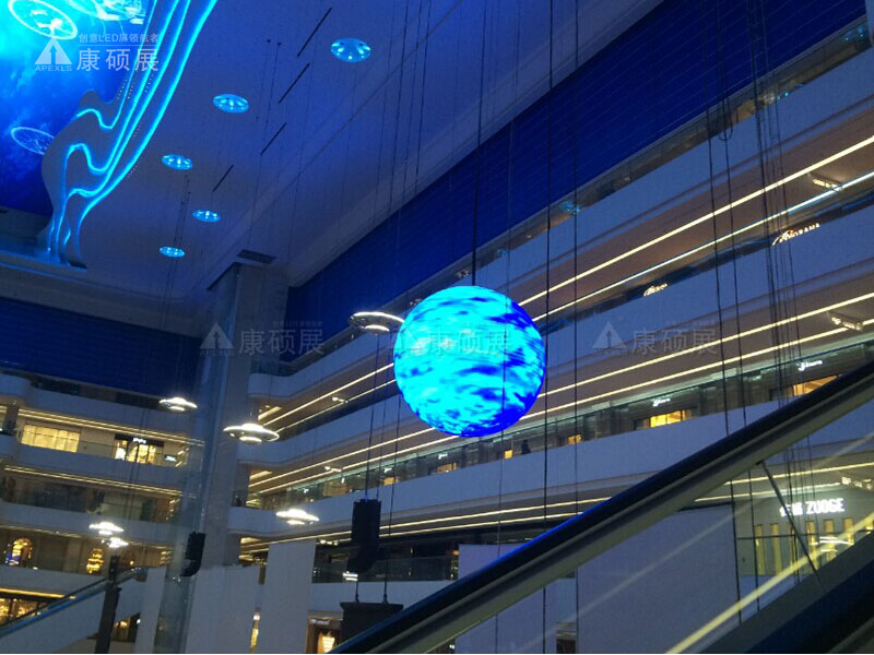 而三個(gè)不同直徑的P6規(guī)格的LED球形屏,包括4米直徑的LED球形屏1個(gè),1.8米直徑的LED球形屏2個(gè),作為康碩展的專利產(chǎn)品,利用康碩展在LED異形屏上的技術(shù)優(yōu)勢(shì),真正做到無(wú)縫拼接,并且采用均勻抽點(diǎn)技術(shù),使得球形屏畫面細(xì)膩逼真,這三個(gè)LED球形屏根據(jù)現(xiàn)場(chǎng)情況,或吊裝和天花板上,或座裝于地面,將光與藝術(shù)充分結(jié)合,與現(xiàn)場(chǎng)環(huán)境相得益彰,打造出令人震撼的光影傳奇。