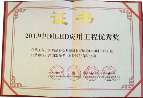在隨后舉行的中國LED行業(yè)年度評(píng)選頒獎(jiǎng)典禮上,雷曼光電榮獲“2013中國LED應(yīng)用工程優(yōu)秀獎(jiǎng)”及“2013中國LED行業(yè)年度影響力企業(yè)”兩項(xiàng)大獎(jiǎng)。本次評(píng)選由中國半導(dǎo)體照明/LED產(chǎn)業(yè)與應(yīng)用聯(lián)盟、中國光學(xué)光電子行業(yè)協(xié)會(huì)光電器件分會(huì)、中國光學(xué)光電子協(xié)會(huì)顯示應(yīng)用分會(huì)、中國電子報(bào)社聯(lián)合進(jìn)行。本次獲獎(jiǎng),充分肯定了雷曼光電在2013年適時(shí)調(diào)整經(jīng)營策略,內(nèi)抓管理,外抓機(jī)遇,持續(xù)加大國內(nèi)外市場(chǎng)的開拓力度,積極探索新的商業(yè)盈利模式。