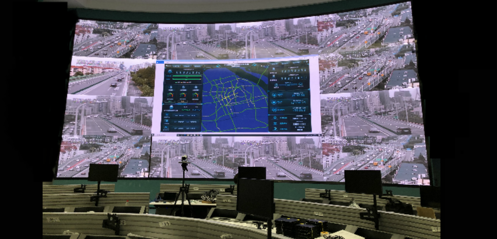 上海市交通委員會(huì)交通指揮中心項(xiàng)目COB超高清顯示主屏寬12.16米、高5.814米,分辨率7680點(diǎn)×3672點(diǎn),通過弧形拼接實(shí)現(xiàn)70.7平方米整屏無縫顯示。
