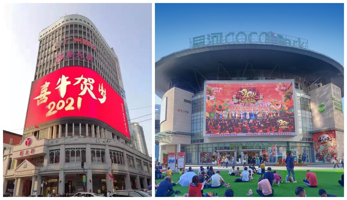 2021年的除夕之夜(2月11日),中央廣播電視總臺通過8K超高清電視頻道對央視春晚進行直播——這也是全球8K超高清電視領(lǐng)域的首次直播。雷曼光電位于廣州北京路步行街新大新百貨的8K超高清顯示屏和位于深圳福田COCO PARK的戶外8K超高清顯示屏接收總臺8K信號并同步直播了首年央視8K春晚,拉近了8K與大眾的距離。