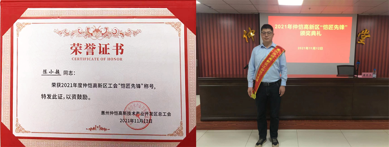 惠州雷曼陳小超榮獲仲愷高新區(qū)“愷匠先鋒”