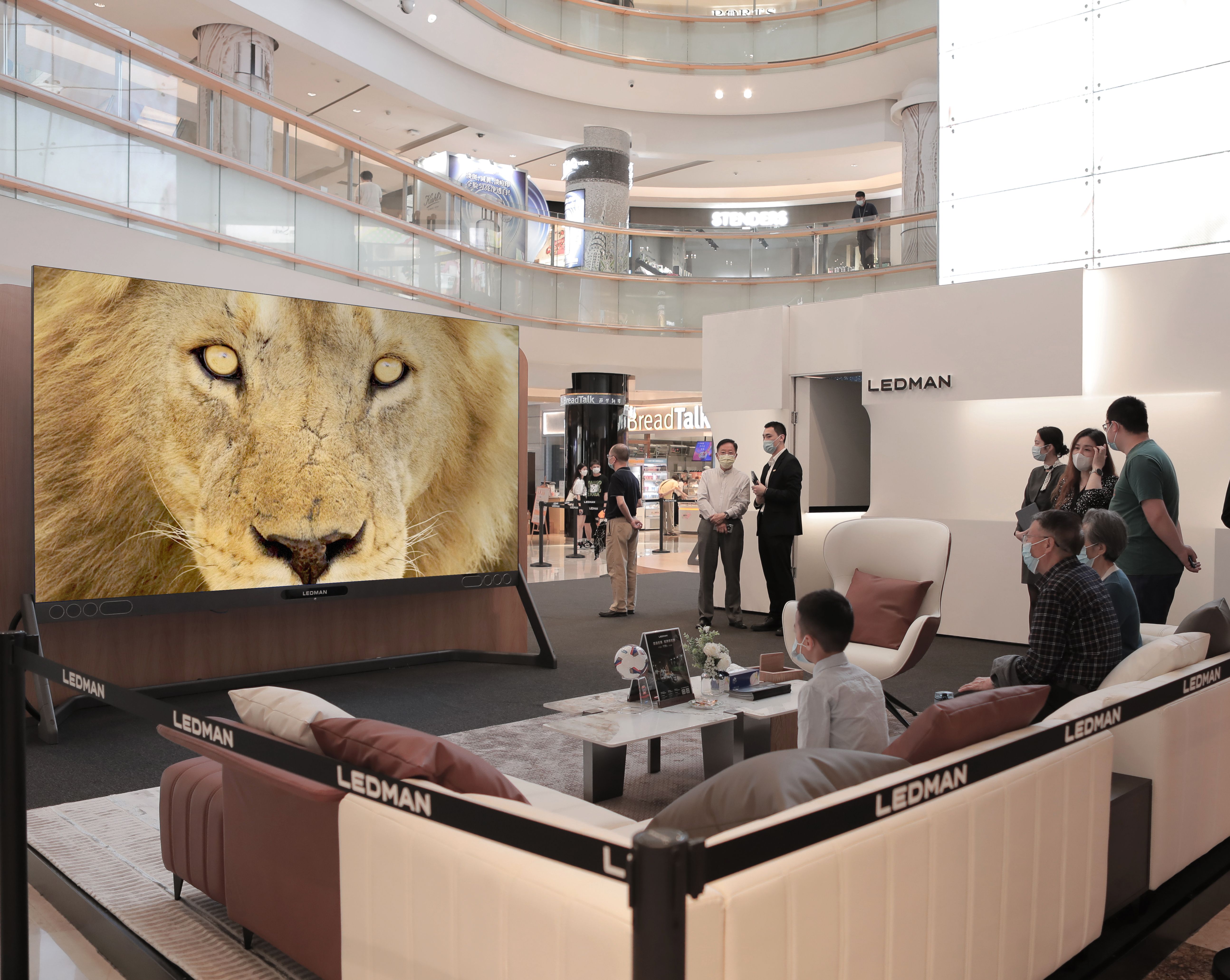 4月16日,雷曼光電攜138吋及165吋超高清巨幕產(chǎn)品亮相深圳南山區(qū)華僑城益田假日廣場(chǎng)。