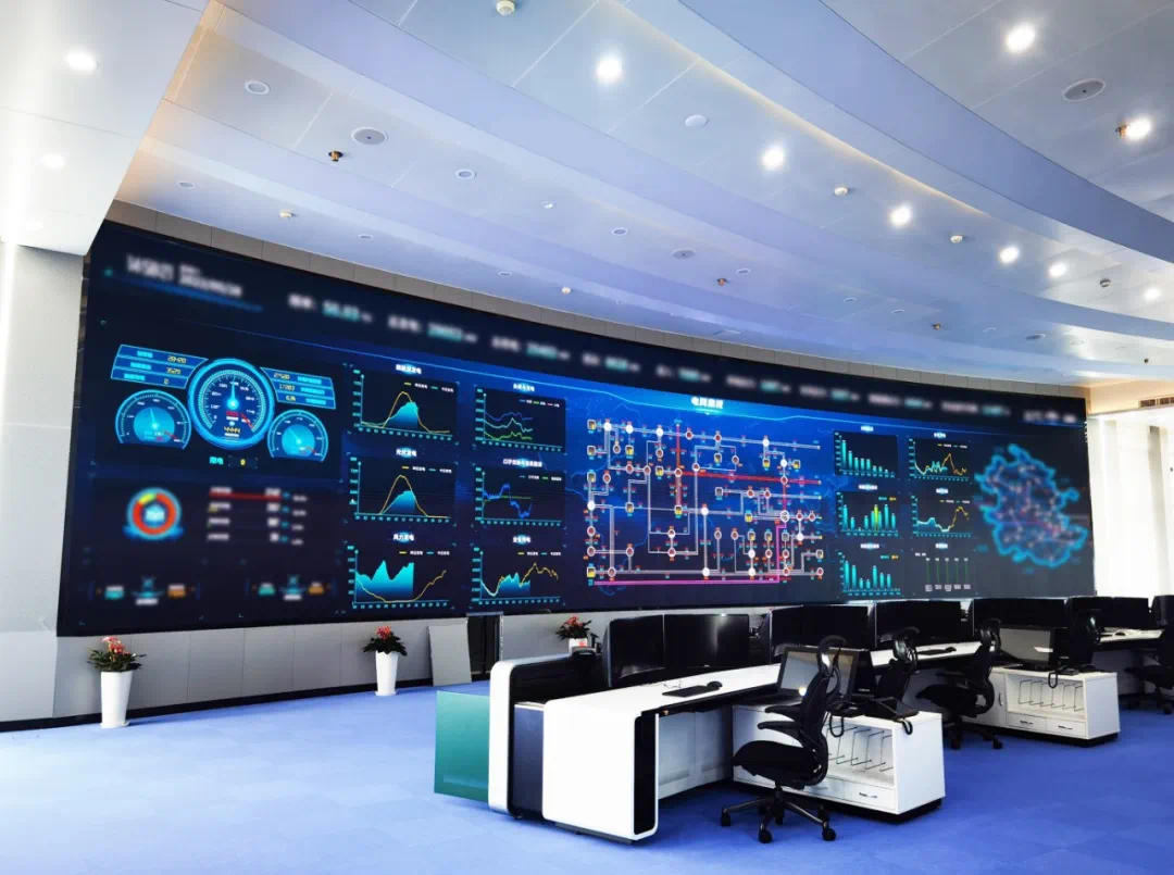雷曼為國(guó)網(wǎng)某電力有限公司電力調(diào)度控制中心安裝了面積為75.33㎡,近3個(gè)8K(總分辨率:19840*4320)的雷曼超高清大屏,以全倒裝COB超高清顯示屏作為調(diào)控中心的智慧顯示終端,為調(diào)控中心大廳數(shù)據(jù)監(jiān)控及各專項(xiàng)接待工作保駕護(hù)航,得到客戶的高度認(rèn)可。