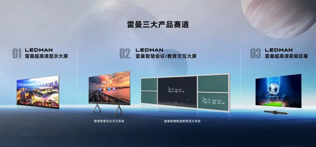作為超高清顯示領(lǐng)域的領(lǐng)航者,雷曼深度布局了專業(yè)顯示、商業(yè)顯示、家用顯示三大產(chǎn)品賽道,并基于自主專利COB技術(shù)打造了雷曼超高清顯示大屏、雷曼智慧會議交互系統(tǒng)、雷曼智慧教室教育顯示系統(tǒng)以及雷曼超高清家庭巨幕等產(chǎn)品,構(gòu)建了全方位的產(chǎn)品和解決方案生態(tài)。
