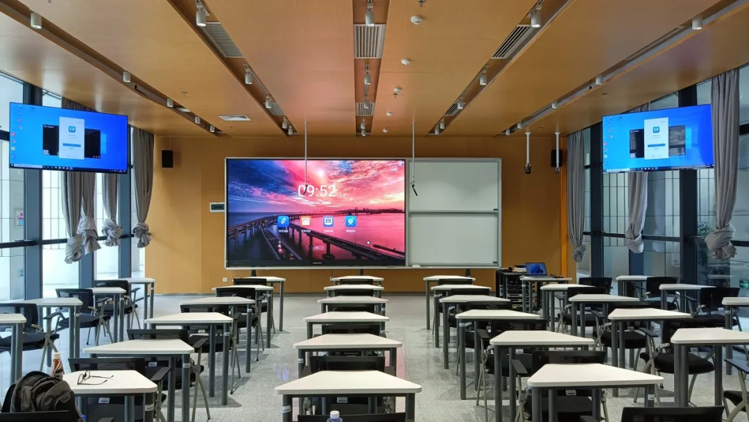 基于可拼接可觸控可交互的COB超高清顯示面板和智能化交互設計,該系統(tǒng)不僅具備超高清的顯示效果和逼真的色彩表現(xiàn),讓教學內(nèi)容的展示更加生動和精彩,170°的可視角度也讓后排的學生看得更清晰;還能夠幫助教師進行教學管理和資源整合,通過手勢觸摸控屏等操作輕松展示教學內(nèi)容,引導學生思考和討論,實現(xiàn)個性化教學。