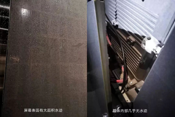 這款大屏在搭建過程中曾遭遇樓頂消防管道噴頭松動大量噴水的突發(fā)情況,水柱傾瀉如瀑并大面積濺射到屏幕表面。經(jīng)過17小時急速排險和現(xiàn)場排查,雷曼COB超高清大屏箱體內(nèi)部沒有明顯水跡,在擦干屏體表面水漬后大屏正常點(diǎn)亮,展現(xiàn)了出色的防護(hù)性能和優(yōu)異的產(chǎn)品品質(zhì)。