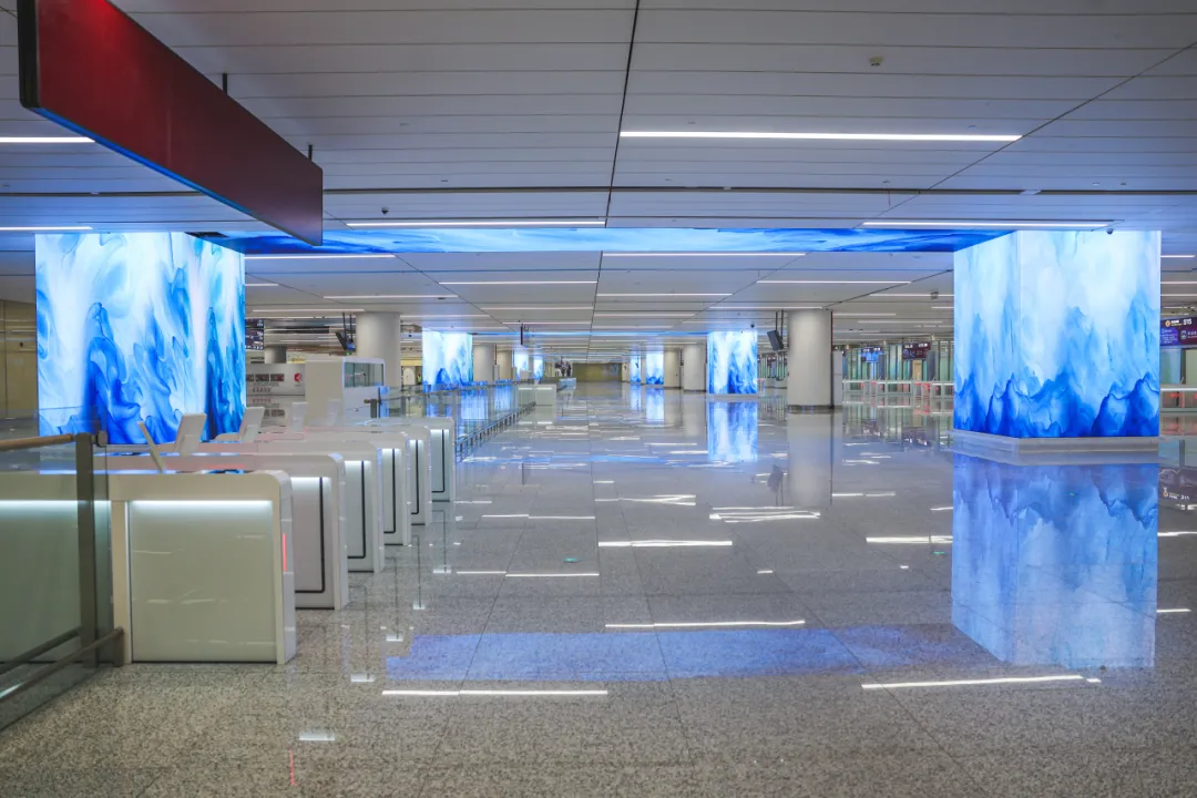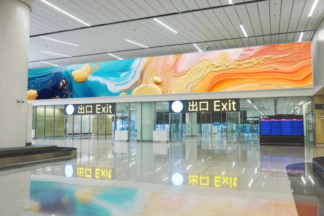 國內(nèi)行李廳出口攔河LED大屏整合地鐵、城際、大巴時刻表,實(shí)現(xiàn)“空鐵陸”交通一鍵可視化切換,提升中轉(zhuǎn)效率。