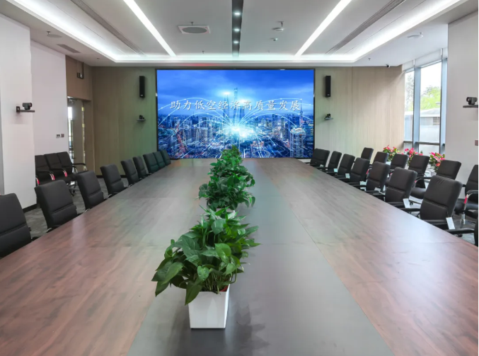 在蘇州市低空飛行政務服務中心會議室,分辨率為3840×2160的雷曼COB超高清大屏同樣能夠為決策者提供清晰、真實的畫面。在進行政策討論和方案評審時,參會人員可以輕松觀察到每一個細節(jié),促進了信息的有效傳遞和溝通。