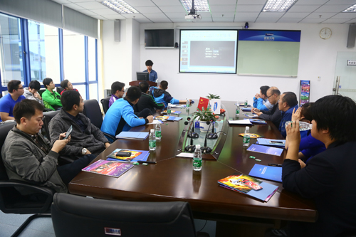 參觀結(jié)束后,雷曼體育市場總監(jiān)段學(xué)舉就公司最新發(fā)布的移動互聯(lián)網(wǎng)APP產(chǎn)品“第12人”以及雷曼獨家研發(fā)的足球賽場新型LED廣告媒體向與會代表進行了詳細介紹,與會代表紛紛就這兩款新產(chǎn)品提供意見和建議。最后,由雷曼體育的設(shè)計師向與會代表就LED顯屏廣告視頻制作素材進行培訓(xùn)并分發(fā)了相應(yīng)操作手冊,通過交流,讓彼此更清楚地了解以往工作中存在的問題,并得到溝通和解決,這將會大大提高今后的工作效率。