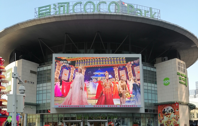 2021年2月11日,農(nóng)歷大年三十,雷曼光電出品的深圳福田星河COCO PARK廣場戶外8K超高清顯示屏,及位...