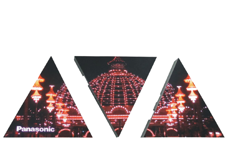 三角形LED顯示屏,是LED顯示屏的一個細分市場體現(xiàn),根據(jù)客戶要求進行定制的一款創(chuàng)意性LED顯示屏。采用三角形模組,可以組合成三角形、鉆石形、菱形等多邊的LED顯示屏,不但造型新穎,而且還適合一些特定場合,起到裝飾裝修的作用,可以播放視頻廣告。