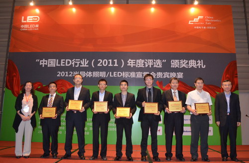 2012年4月10日由中國電子報社、中國半導(dǎo)體照明/LED產(chǎn)業(yè)與應(yīng)用聯(lián)盟、中國光學(xué)光電子行業(yè)協(xié)會光電器件分會、中國光學(xué)光電子行業(yè)協(xié)會LED顯示應(yīng)用分會、中國電子器材總公司聯(lián)合主辦的“中國LED行業(yè)(2011)年度評選” 在深圳會展中心梅花廳隆重舉行。