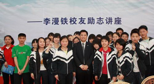 成長勵(lì)志講座上,李董事長結(jié)合自身在國家機(jī)關(guān)、合資企業(yè)、民營企業(yè)中的豐富工作經(jīng)歷,內(nèi)容深入淺出,語言準(zhǔn)確凝練,氣氛融洽自然,為一中學(xué)子提供了一份精神營養(yǎng)大餐。針對90后學(xué)生的特點(diǎn),他勸勉學(xué)弟學(xué)妹們要樹立正確的人生目標(biāo),求學(xué)時(shí)要勤奮努力、培養(yǎng)興趣、持之以恒、廣泛閱讀,為個(gè)人打下堅(jiān)實(shí)的知識基礎(chǔ);要注重智商和情商的共同提高,用積極的心態(tài)面對挫折,把困難當(dāng)做人生的一筆財(cái)富;要誠信感恩、養(yǎng)成良好學(xué)習(xí)和生活習(xí)慣,注重綜合素質(zhì)全面提升,力爭做家庭、學(xué)校、社會(huì)、國家的有用之才。勵(lì)志講座最后采用問答互動(dòng)的方式,李董對學(xué)弟學(xué)妹的紙條式問題一一解答,解答直接明了不做任何修飾和回避,正因?yàn)檫@種坦率的解答,現(xiàn)場氣氛達(dá)到高潮,不斷上臺與學(xué)長握手、擁抱、合影、索取簽名?;?dòng)的現(xiàn)身說法,為正值青春期的學(xué)生們身心健康發(fā)展提供了較大的激勵(lì)和榜樣作用。