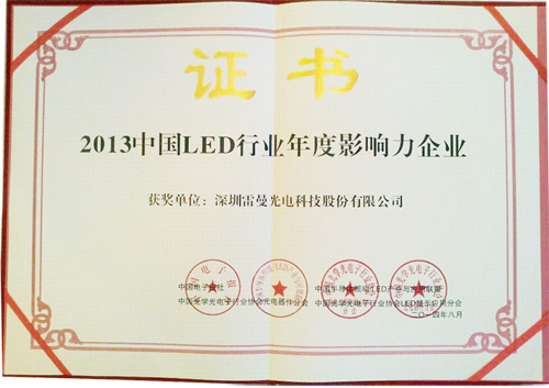 在隨后舉行的中國LED行業(yè)年度評(píng)選頒獎(jiǎng)典禮上,雷曼光電榮獲“2013中國LED應(yīng)用工程優(yōu)秀獎(jiǎng)”及“2013中國LED行業(yè)年度影響力企業(yè)”兩項(xiàng)大獎(jiǎng)。本次評(píng)選由中國半導(dǎo)體照明/LED產(chǎn)業(yè)與應(yīng)用聯(lián)盟、中國光學(xué)光電子行業(yè)協(xié)會(huì)光電器件分會(huì)、中國光學(xué)光電子協(xié)會(huì)顯示應(yīng)用分會(huì)、中國電子報(bào)社聯(lián)合進(jìn)行。本次獲獎(jiǎng),充分肯定了雷曼光電在2013年適時(shí)調(diào)整經(jīng)營策略,內(nèi)抓管理,外抓機(jī)遇,持續(xù)加大國內(nèi)外市場(chǎng)的開拓力度,積極探索新的商業(yè)盈利模式。