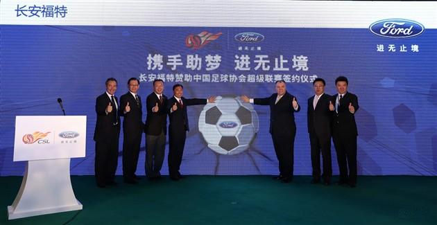 2014年5月10日,在北京工人體育場(chǎng),長(zhǎng)安福特聯(lián)合中超聯(lián)賽有限責(zé)任公司共同召開新聞發(fā)布會(huì),正式宣布自2014年起至2017年,長(zhǎng)安福特將作為中國(guó)足球協(xié)會(huì)超級(jí)聯(lián)賽(以下簡(jiǎn)稱中超聯(lián)賽)的官方高級(jí)合作伙伴、中超聯(lián)賽官方推廣及發(fā)展合作伙伴,其旗下全系產(chǎn)品也將作為中超聯(lián)賽的唯一官方指定用車,助夢(mèng)中國(guó)足球事業(yè)。發(fā)布會(huì)現(xiàn)場(chǎng),中國(guó)足協(xié)副主席、中超公司董事長(zhǎng)于洪臣用“如虎添翼”來形容此次與長(zhǎng)安福特的聯(lián)手。隨著中超聯(lián)賽歷史上第一個(gè)汽車類品牌的進(jìn)駐,中超已經(jīng)逐漸形成了“品牌集群”現(xiàn)象。中超聯(lián)賽得到認(rèn)同的同時(shí),也給聯(lián)賽的管理者與參與者在產(chǎn)品設(shè)計(jì)、完善服務(wù)、強(qiáng)化競(jìng)賽管理以及文化建設(shè)等方面提出了更高的要求。