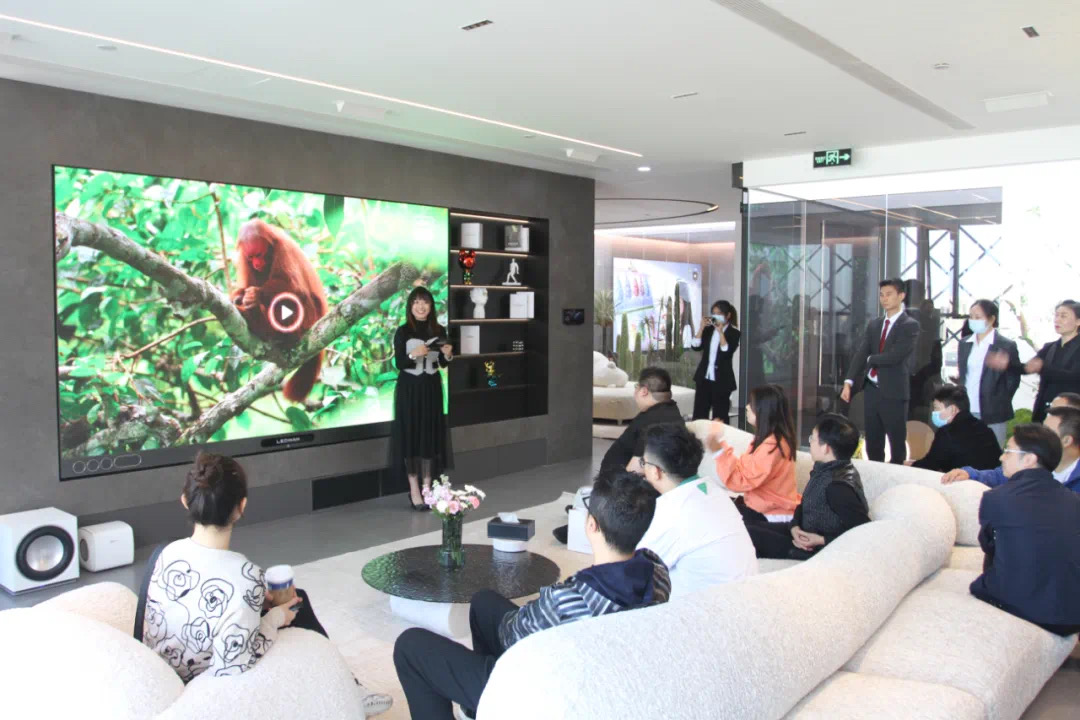 走進(jìn)店內(nèi),獨(dú)樹(shù)一幟的設(shè)計(jì)風(fēng)格,極具空間感的區(qū)域規(guī)劃搭配黑科技產(chǎn)品——2臺(tái)138吋雷曼Micro LED超高清家庭巨幕坐鎮(zhèn)C位,致力打造豪華客廳、私人家庭影院場(chǎng)景,為高端用戶(hù)帶來(lái)全新沉浸式體驗(yàn)的同時(shí)更帶來(lái)了品質(zhì)生活的解答方法。