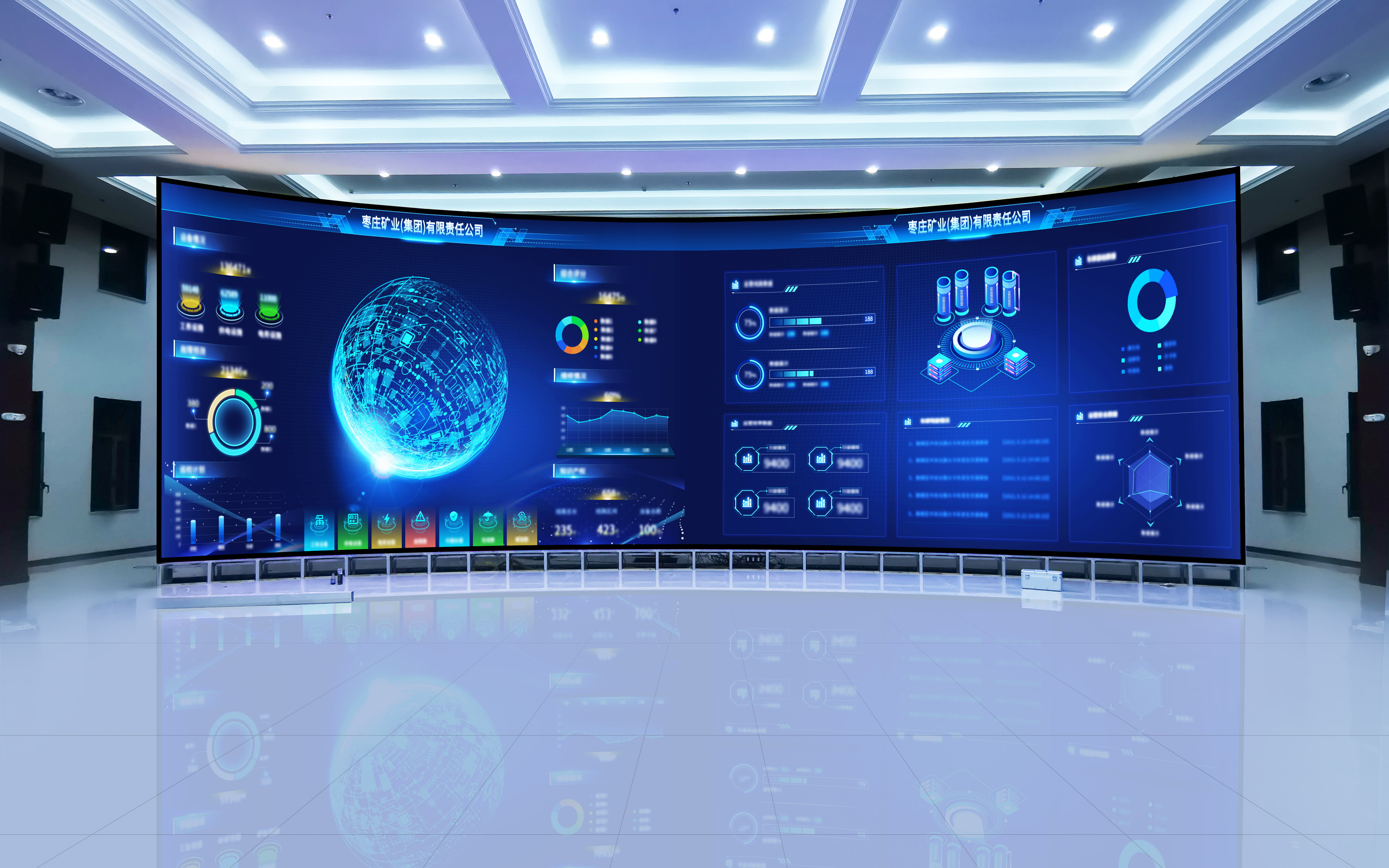 雷曼COB超高清可視化拼接大屏解決方案作為甘肅華亭硯北煤礦現(xiàn)代化安全生產(chǎn)運(yùn)營(yíng)管控平臺(tái)的主要組成部分,通過面積約74㎡、分辨率達(dá)16K的弧形COB超高清顯示屏及配套系統(tǒng)充分滿足煤礦集中顯示、集中監(jiān)控、 統(tǒng)一指揮調(diào)度的需求, 實(shí)現(xiàn)“全流程可視”,打造“5G智能礦山”。
