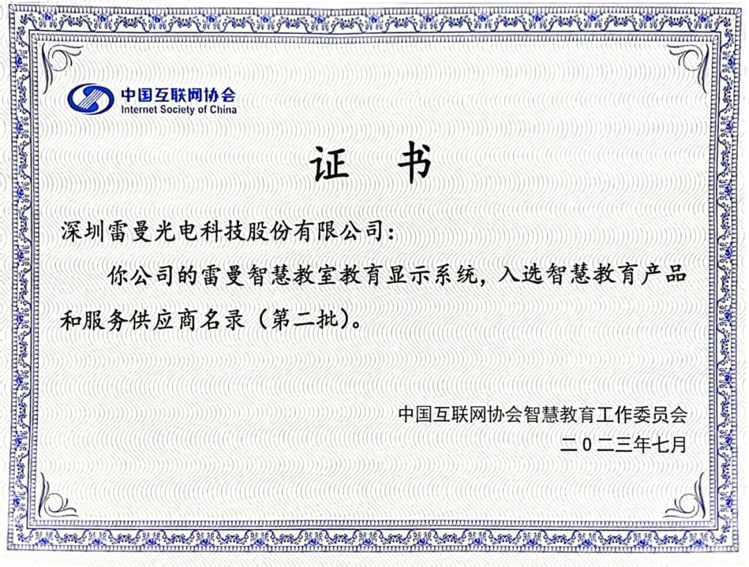 在同期舉辦的主題為“數(shù)字變革與智慧教育未來”的智慧教育論壇上,《智慧教育產(chǎn)品和服務供應商名錄(第二批)》正式公布。雷曼智慧教室教育顯示系統(tǒng)成功入選。獲得這一殊榮,證明雷曼在智慧教育領(lǐng)域的技術(shù)創(chuàng)新和成果應用得到了權(quán)威認可。