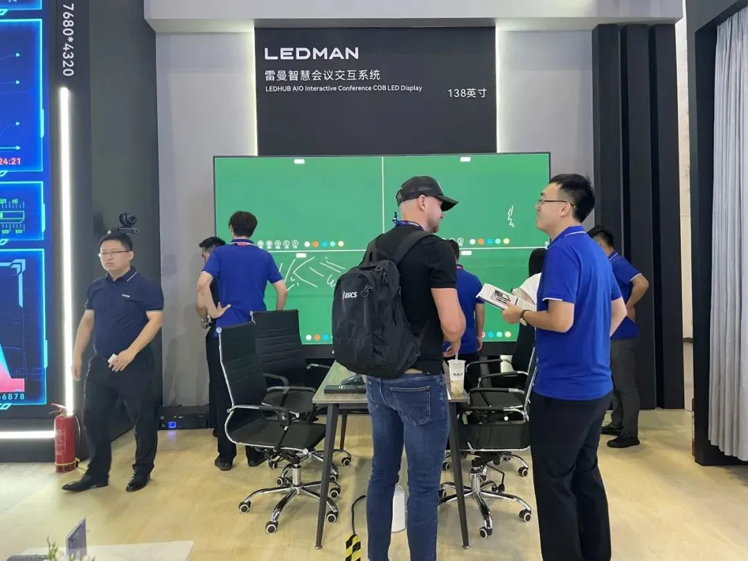 此外,雷曼在商用顯示和家用顯示領(lǐng)域的創(chuàng)新產(chǎn)品及解決方案同樣備受矚目。雷曼智慧會議交互系統(tǒng)采用可拼接可觸控可交互的COB超高清顯示面板,集成了“書寫白板、無線投屏、文件管理、視頻會議”等功能,實現(xiàn)會議智能化管理,提升會議交互體驗,為與會者提供了高效、流暢的數(shù)字化會議體驗。