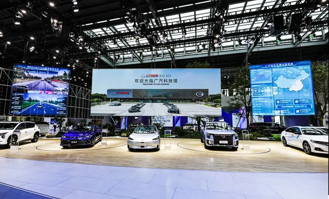 方柱冰屏與天幕冰屏的組合,不僅起到了裝飾亮化美化的作用,也成為廣汽集團品牌展示的另一個重要窗口,在帶來震撼視聽體驗的同時,也能夠幫助訪客進一步加深對廣汽集團品牌的了解及認可。