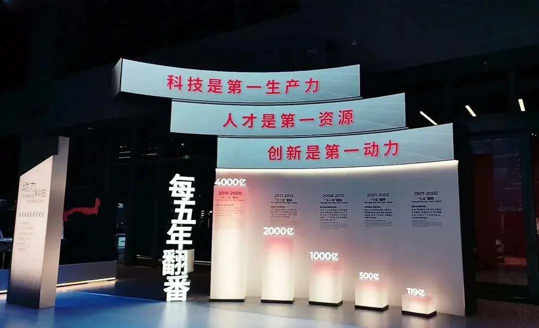動力科技區(qū)主要展示廣汽自研動力總成技術成果。展示墻區(qū)域展示廣汽集團“每五年翻番”業(yè)績及發(fā)展歷程,柔性屏顯示品牌標語及發(fā)展理念。參觀者可以更直觀感受到廣汽集團近年來的高速發(fā)展,以及日益提升的品牌影響力。