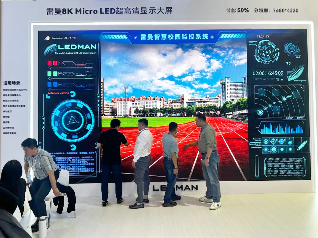 此外,雷曼還展示了8K Micro LED超高清節(jié)能冷屏。這一創(chuàng)新性產(chǎn)品不僅為校園安防可視化、宣傳展播中心、科研基地、多功能廳等帶來(lái)了創(chuàng)新性解決方案,而且具有顯示效果佳、節(jié)能環(huán)保等特點(diǎn),成為展臺(tái)的一大亮點(diǎn)。