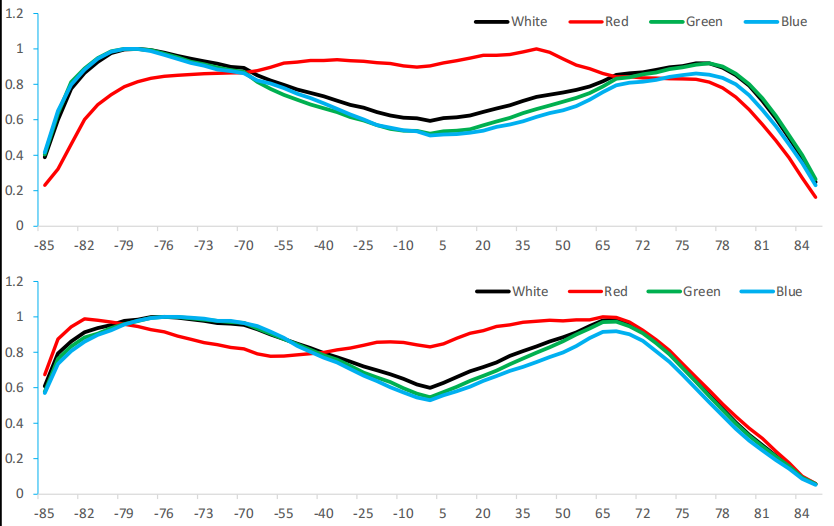 圖3、Mini-LED RGB裸晶芯片長邊方向光型分布圖