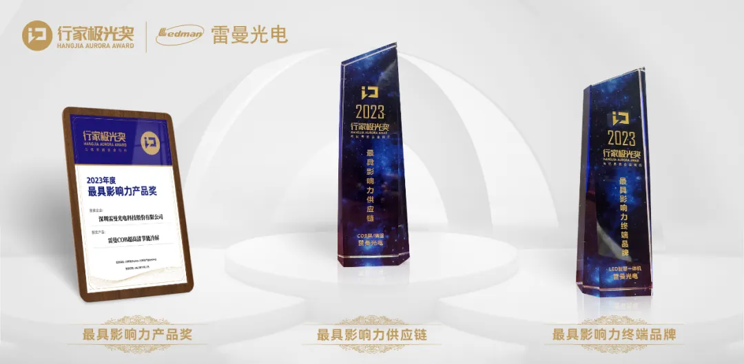 11月30日,2023行家極光獎(jiǎng)?lì)C獎(jiǎng)典禮在深圳舉辦,雷曼光電榮膺2023行家極光獎(jiǎng)三大年度獎(jiǎng)項(xiàng)。雷曼光電憑借在COB顯示細(xì)分領(lǐng)域的綜合實(shí)力榮獲“COB屏/模組 年度最具影響力供應(yīng)鏈企業(yè)”、LED智慧一體機(jī)系列產(chǎn)品榮獲“年度最具影響力終端品牌”、雷曼COB超高清節(jié)能冷屏斬獲“年度最具影響力產(chǎn)品獎(jiǎng)”。