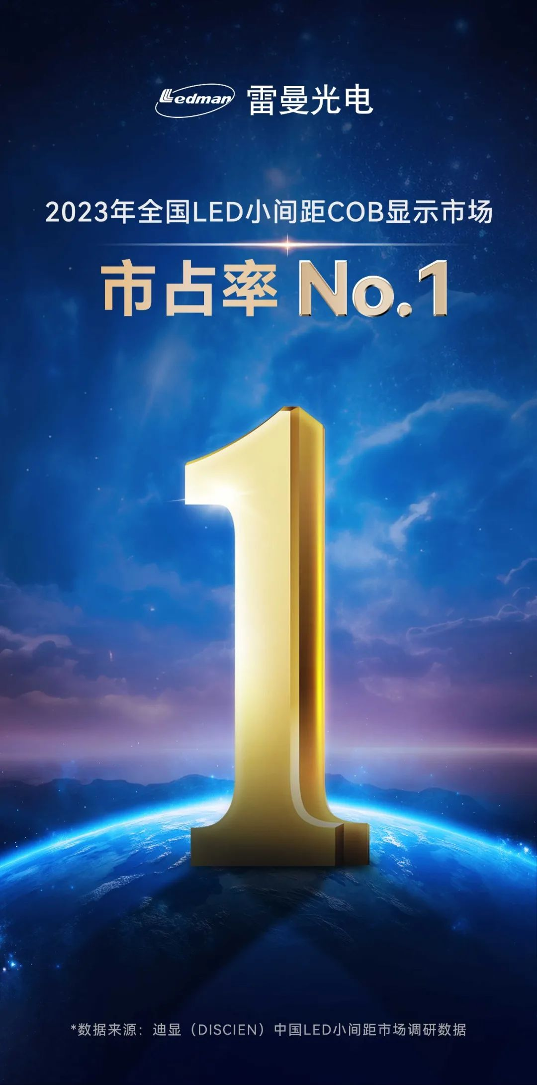 近日,權(quán)威機(jī)構(gòu)迪顯(DISCIEN)發(fā)布《中國LED小間距市場(chǎng)研究報(bào)告》。報(bào)告顯示,在中國大陸地區(qū)LED小間距COB市場(chǎng),以品牌維度統(tǒng)計(jì),雷曼光電銷售額&銷售量均位居行業(yè)第一。目前雷曼光電在COB細(xì)分領(lǐng)域的市場(chǎng)占有率已連續(xù)3年蟬聯(lián)第一。