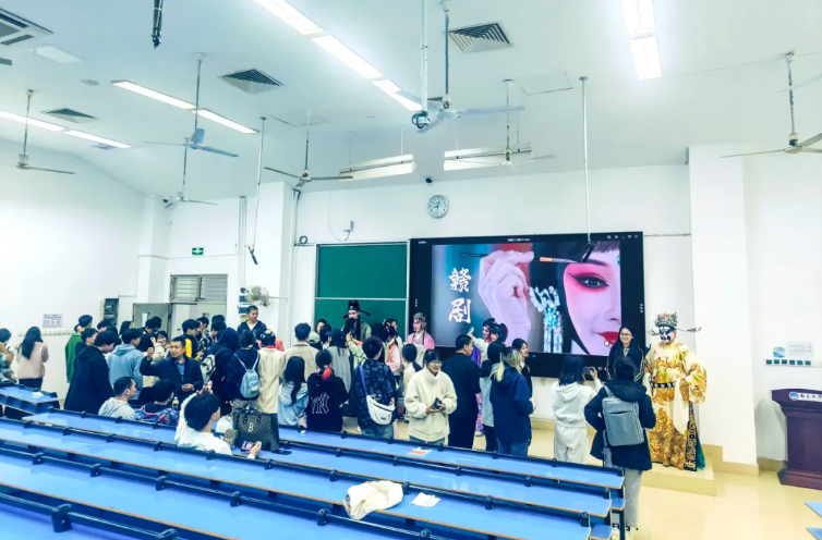 “各位同學(xué)今天有福了,學(xué)校非常支持我們這堂課程,特意安裝了LED大屏,讓每位來聽課的同學(xué)都能夠有更好的體驗,希望同學(xué)們能夠通過這堂課更加深入了解并喜愛上贛劇。”陳俐老師感受到了同學(xué)們的熱情,在課程正式開始前為同學(xué)們介紹教室的新變化。