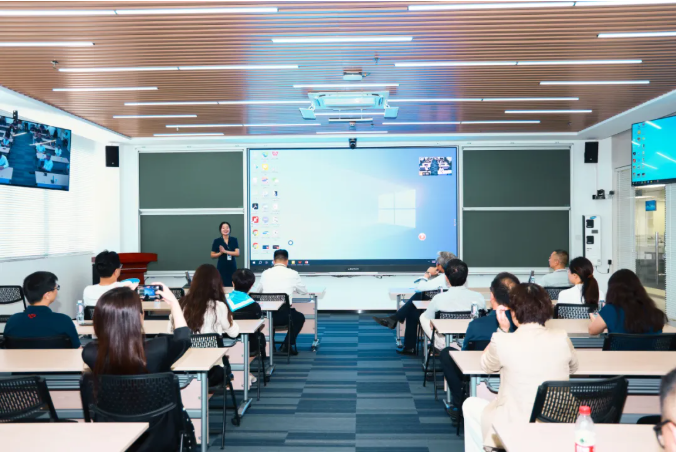 陳方若院長(zhǎng)一行重點(diǎn)體驗(yàn)了雷曼光電打造的數(shù)字化教育場(chǎng)景,該場(chǎng)景深度還原了“全沉浸、強(qiáng)交互、高實(shí)時(shí)”的活力課堂,展示雷曼高校數(shù)字交互教育顯示系統(tǒng)具備的“智能同屏、自由縮放、四分屏白板、智慧互聯(lián)、多方互動(dòng)、線上授課”等豐富功能。該系統(tǒng)創(chuàng)新教學(xué)新模式,已在上海交大閔行校區(qū)陳瑞球樓114教室落地應(yīng)用。