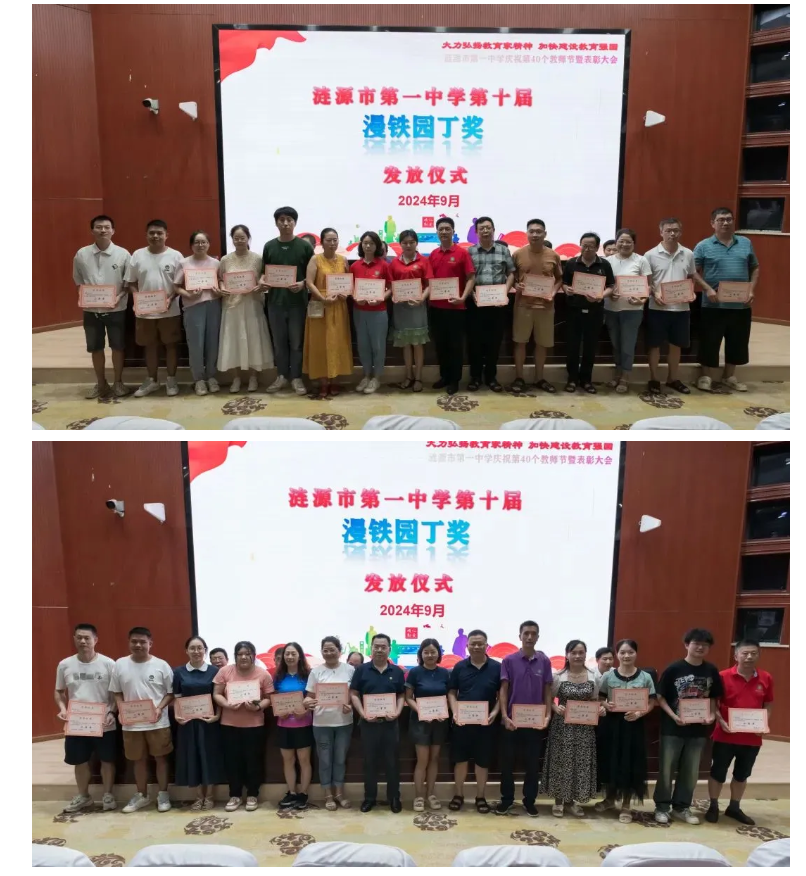 姚毅副校長(zhǎng)宣讀了獲得第十屆漫鐵園丁獎(jiǎng)的教師名單,學(xué)校領(lǐng)導(dǎo)受李漫鐵校友委托,給獲獎(jiǎng)教師頒獎(jiǎng),將大會(huì)氣氛推向了高潮。