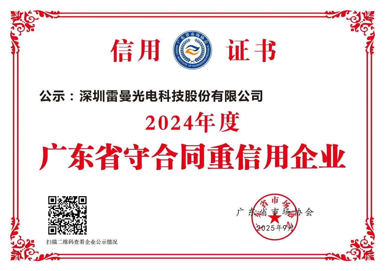 公司秉持“以誠為本、守信為責”的核心價值觀,持續(xù)完善信用管理體系,嚴格執(zhí)行合同全流程管控,并通過技術(shù)創(chuàng)新不斷提升產(chǎn)品品質(zhì)與服務(wù)水平,確保與客戶的合作全程透明可控。近六年來,雷曼光電及及其控股子公司康碩展的合同履約率始終保持100%,贏得了客戶的廣泛信賴。