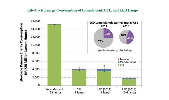 前兩份報告的結(jié)論是,LED照明對環(huán)境的不利影響遠(yuǎn)遠(yuǎn)低于白熾燈,略低于緊湊型熒光燈。在實際測試時,LED照明在節(jié)能方面的表現(xiàn)以壓倒性的優(yōu)勢勝出,隨著技術(shù)的不斷改善,LED的優(yōu)勢也將繼續(xù)增加。第三部分的結(jié)論是LED照明產(chǎn)品并沒有需要避免使用的毒性。