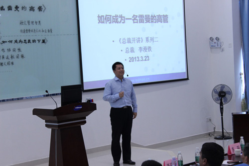 繼雷曼光電《總裁開講》系列講座第一期于2012年10月成功舉辦后,為培養(yǎng)雷曼后備高管精英梯隊,傳承企業(yè)優(yōu)秀文化和傳遞正能量,主題為《如何成為一名雷曼的高管》的《總裁開講》系列講座第二期于2013年3月23日在雷曼光電惠州工業(yè)園報告廳成功舉行。雷曼光電董事長兼總裁李漫鐵融匯20年管理心得和人生智慧,精心打造了本次課程,全公司超過90名中高層管理干部參與了本次培訓(xùn)。